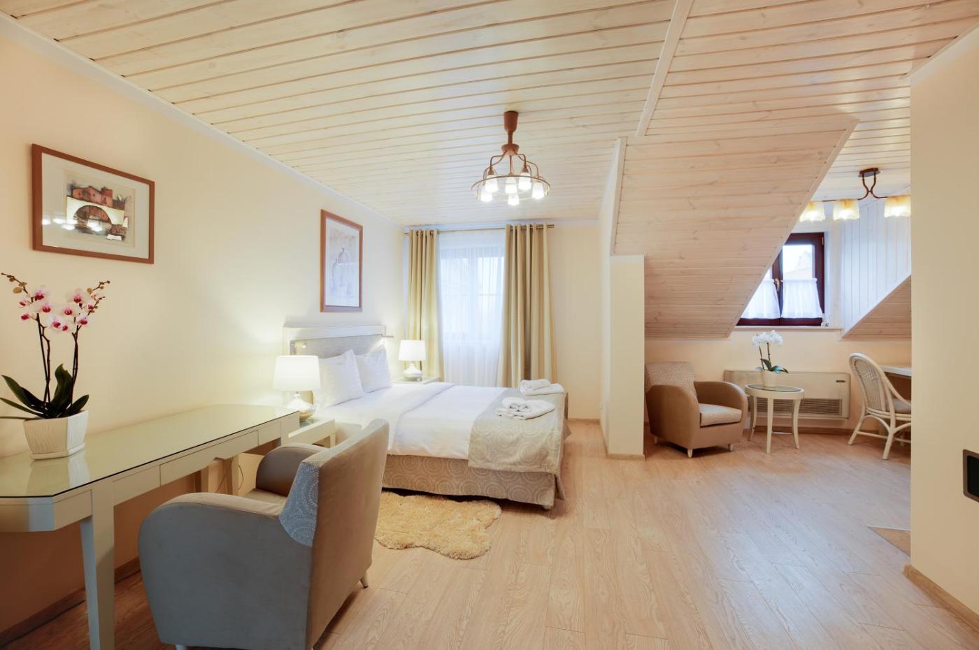 Apartament typu Deluxe. The air-conditioned apartment has 1 bedroom and 1 bathroom with a walk-in shower and a hairdryer. Meals can be prepared in the well-fitted kitchenette, which has a stovetop, a refrigerator and kitchenware. This apartment features a tea and coffee maker, flat-screen TV with cable channels, city views, as well as chocolate for guests. The unit has 2 beds. Apartament - 3 osobowy. Powierzchnia pokoju ok.: 30 mkw. ;